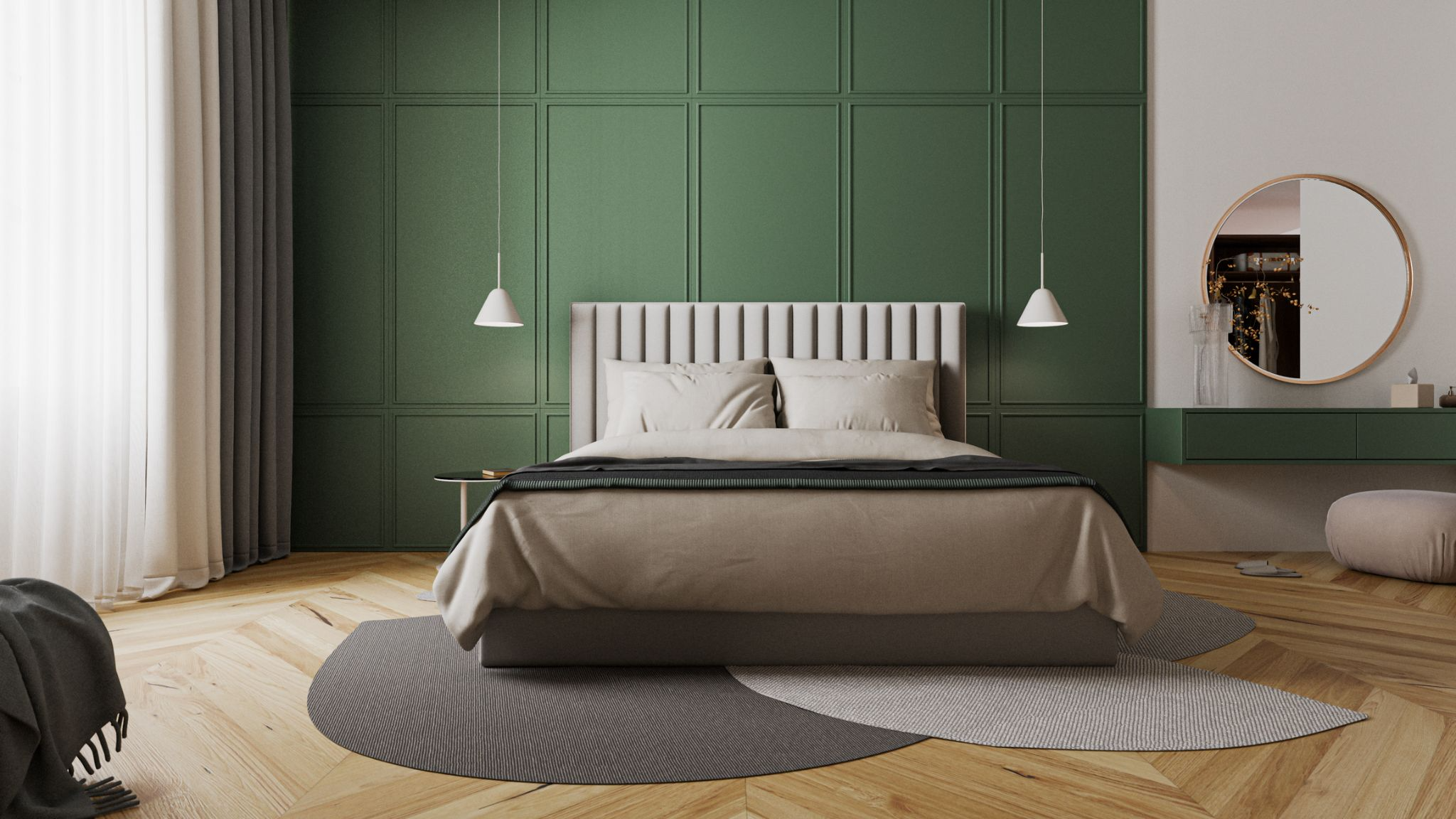 Wainscoting adds depth and character to your bedroom. By installing wooden panels on the lower portion of the wall, you introduce both texture and architectural detail. Available in simple or ornate styles, wainscoting brings timeless elegance to your space.